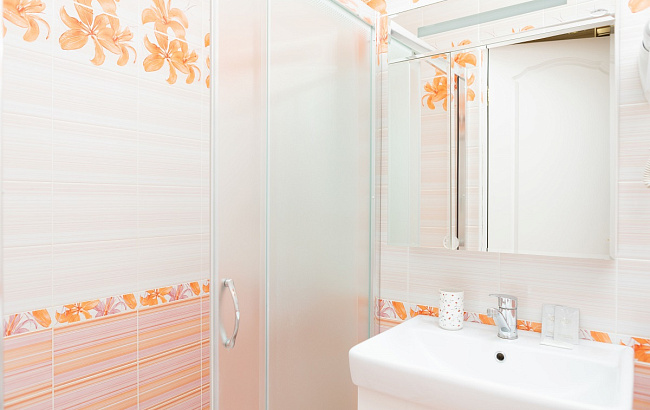 В номере полутороспальная кровать, мягкая мебель, мини-холодильник, телевизор, телефон, кондиционер, электрочайник, санузел с душем, фен, халат и тапочки.